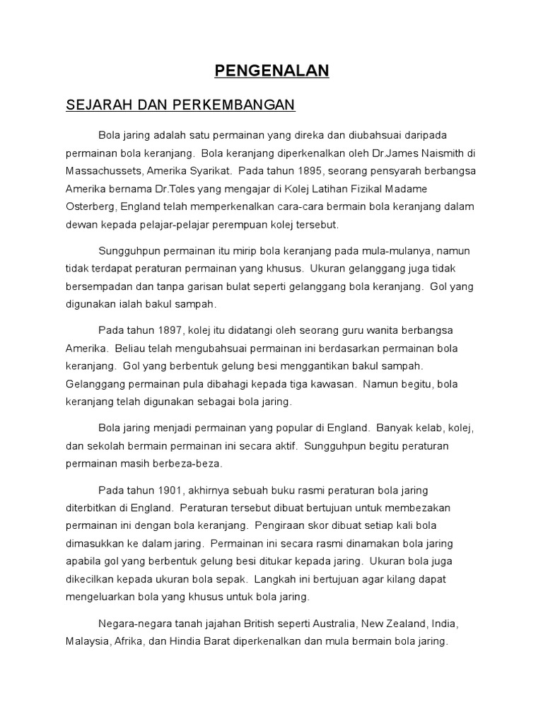 Pengenalan Sejarah Bola Jaring Pdf