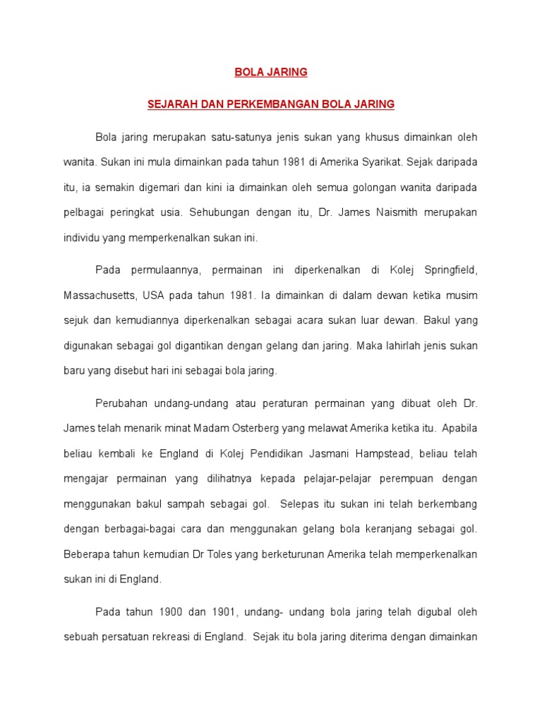 Sejarah Dan Perkembangan Bola Jaring Pdf